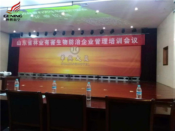 2018年12月16日,應山東省林業產業聯合會邀請,通遼市神鷹通用航空有限公司副總經理宋雪飛、市場銷售部副經理劉欣和區域經理王洪偉一行三人,參加了由山東省林業產業聯合會主辦的山東省林業有害生物防治企業管理培訓會,此次培訓會在素有“四面荷花三面柳,一城山色半城湖”美譽的“泉城”濟南市召開。